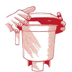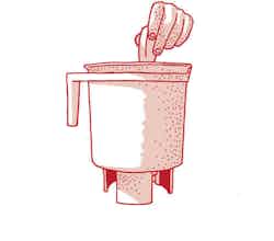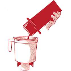 Place stopper in the bottom of Toddy. After rinsing with cold water, place the cloth filter in the inset in the brewer.