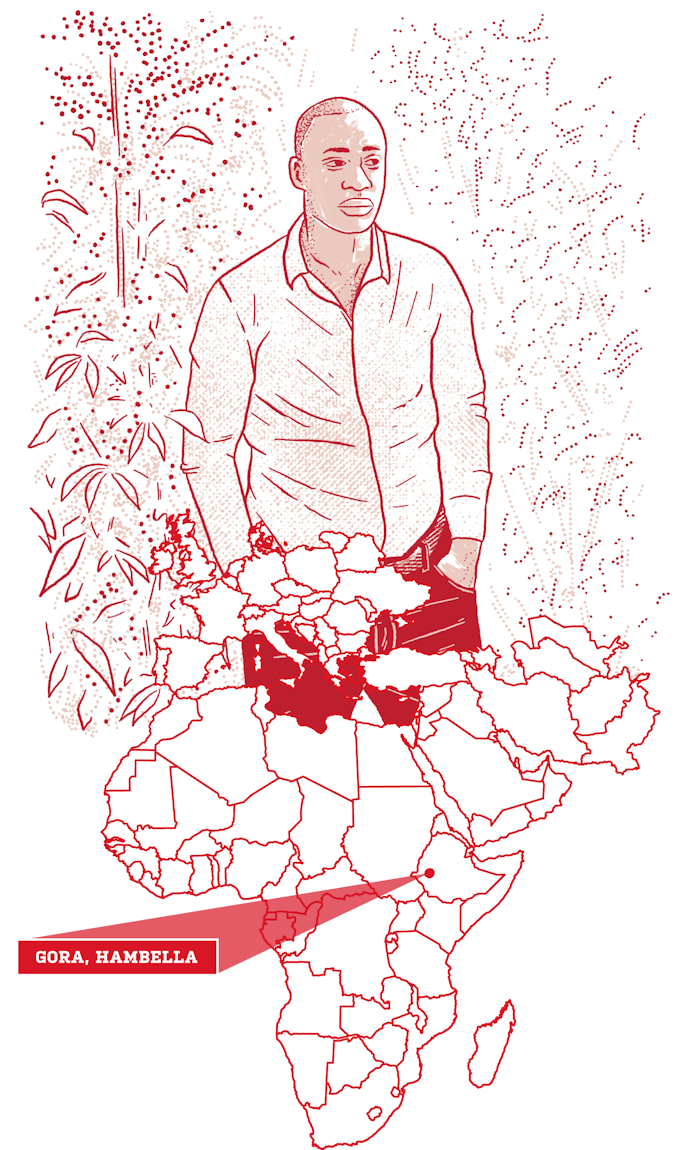 The Hambela area of Guji is one of the most exciting in all of Ethiopia, with very high altitudes and young, vigorous, healthy plants. Producers around the Goro washing station typically work with 3 to 15 hectares of land, far more than the national average, which makes farmer training and incentivization for quality improvement easier and more attainable. Due to the environment, coffee from this area takes a relatively long time to dry, about 40 days. However, slow growth and maturation of the plants and fruit makes for outstanding cup quality.